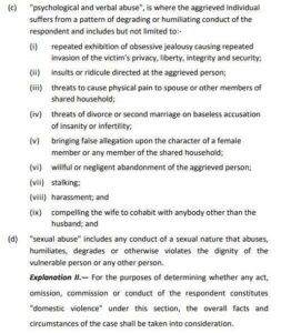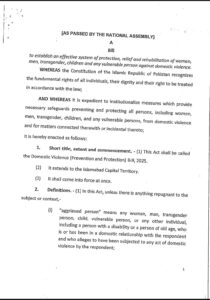 *بیوی کو طلاق یا دوسری شادی کی دھمکی پر 3 سال قید ہو گی، گالی دینے، جذباتی یا نفسیاتی طور پر پریشان کرنا بھی جرم ہو گا، بیوی کو مرضی کے بغیر گھر میں دیگر افراد کو ساتھ رکھنا بھی جرم قرار، بیوی کو گھورنے پر بھی سزا ہو گی۔ پارلیمنٹ سے قانون منظور*