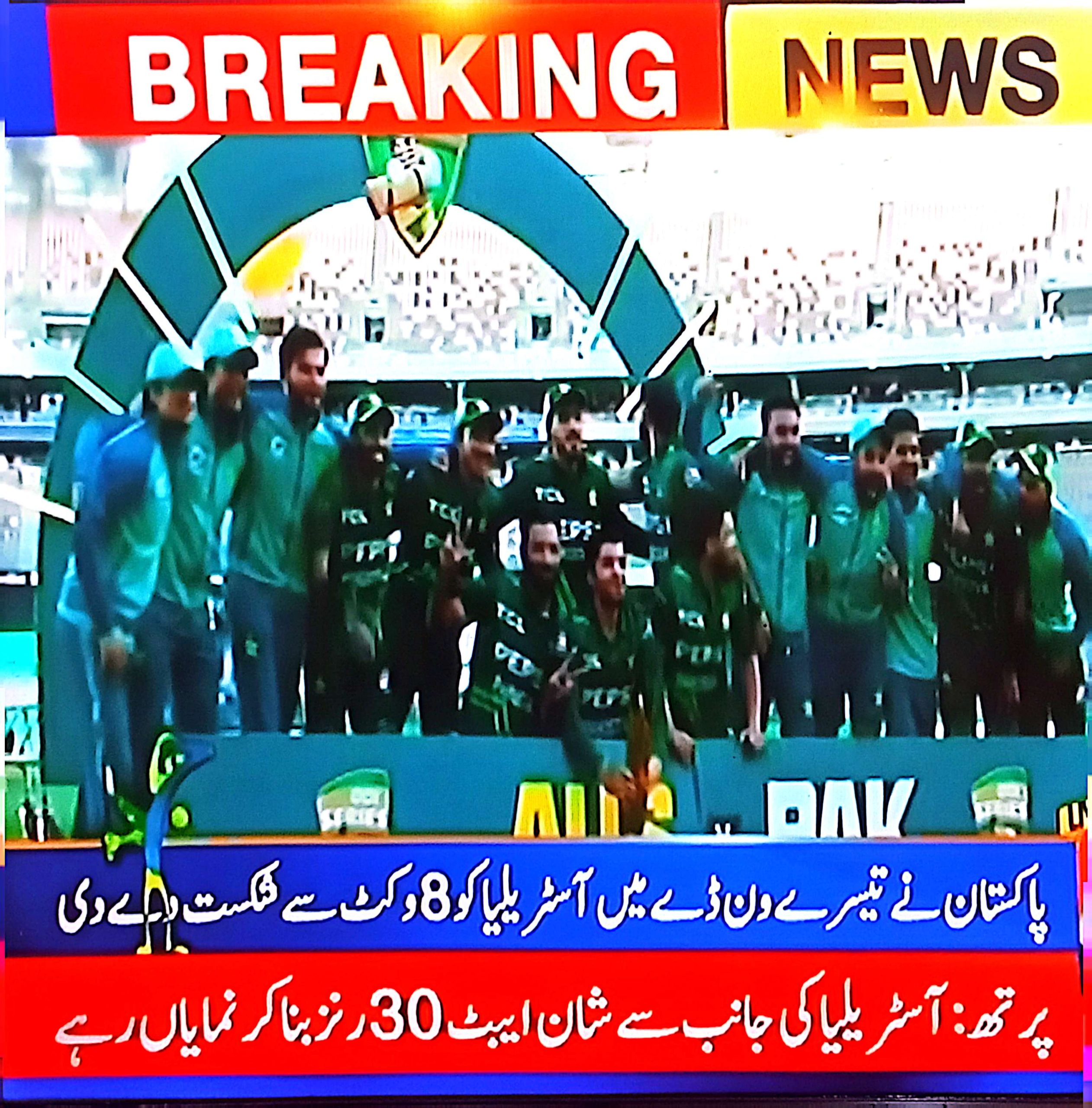 پاکستان کرکٹ ٹیم نے تیسرے ون ڈے میں آسٹریلیا کو شکست دے کر 22 سال بعد اسٹریلیا کو اس کے ہوم گراؤنڈ پر شکست دے کر سیریز جیت لی۔پاکستان نے سیریز دو ایک سے جیتی