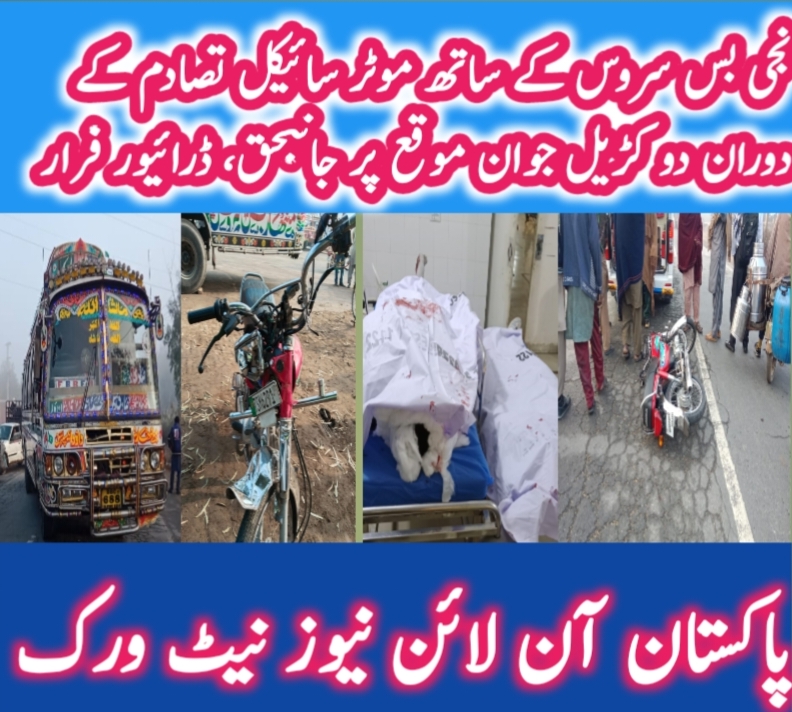 معروف نجی کمپنی کی بس کا موٹر سائیکل کے درمیان تصادم ،دو کڑیل جوان موقع پر جانبحق، ڈرائیور فرار ریسکیو 1122 زرائع